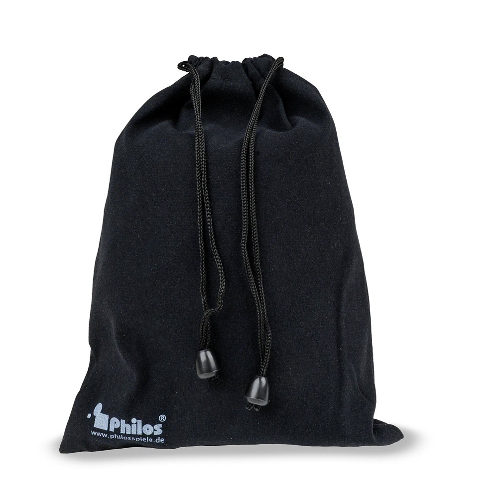 Indhold: 1 doblings­terning, 1 kassette, 4 terninger, 15 mørke brikker, 15 lyse brikker, stofpose til brikker