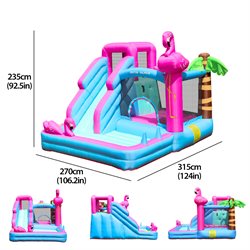Med sjove flamingo-detaljer, rutsjebane og masser af plads til leg er den det perfekte midtpunkt til sommerfester, fødselsdage og legeaftaler.