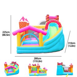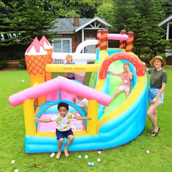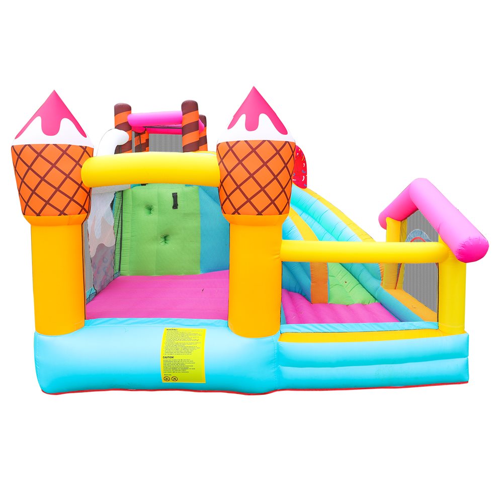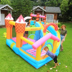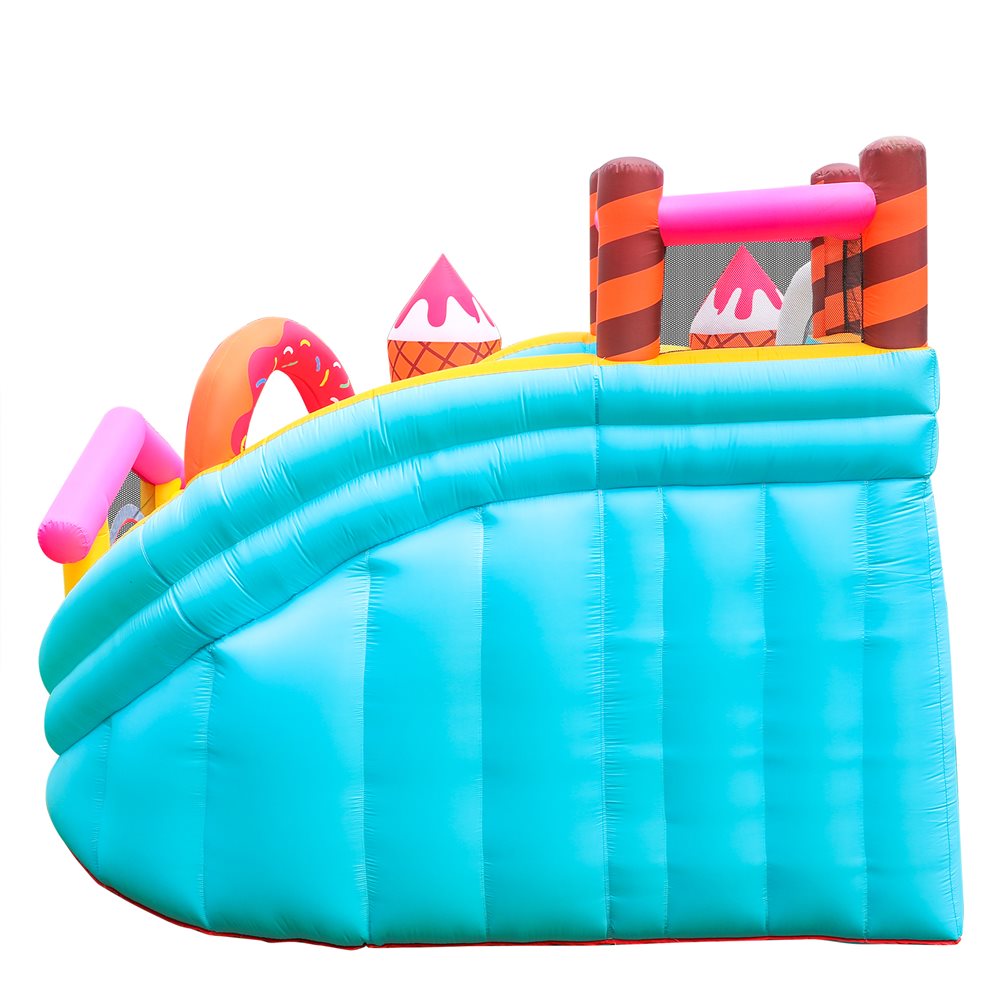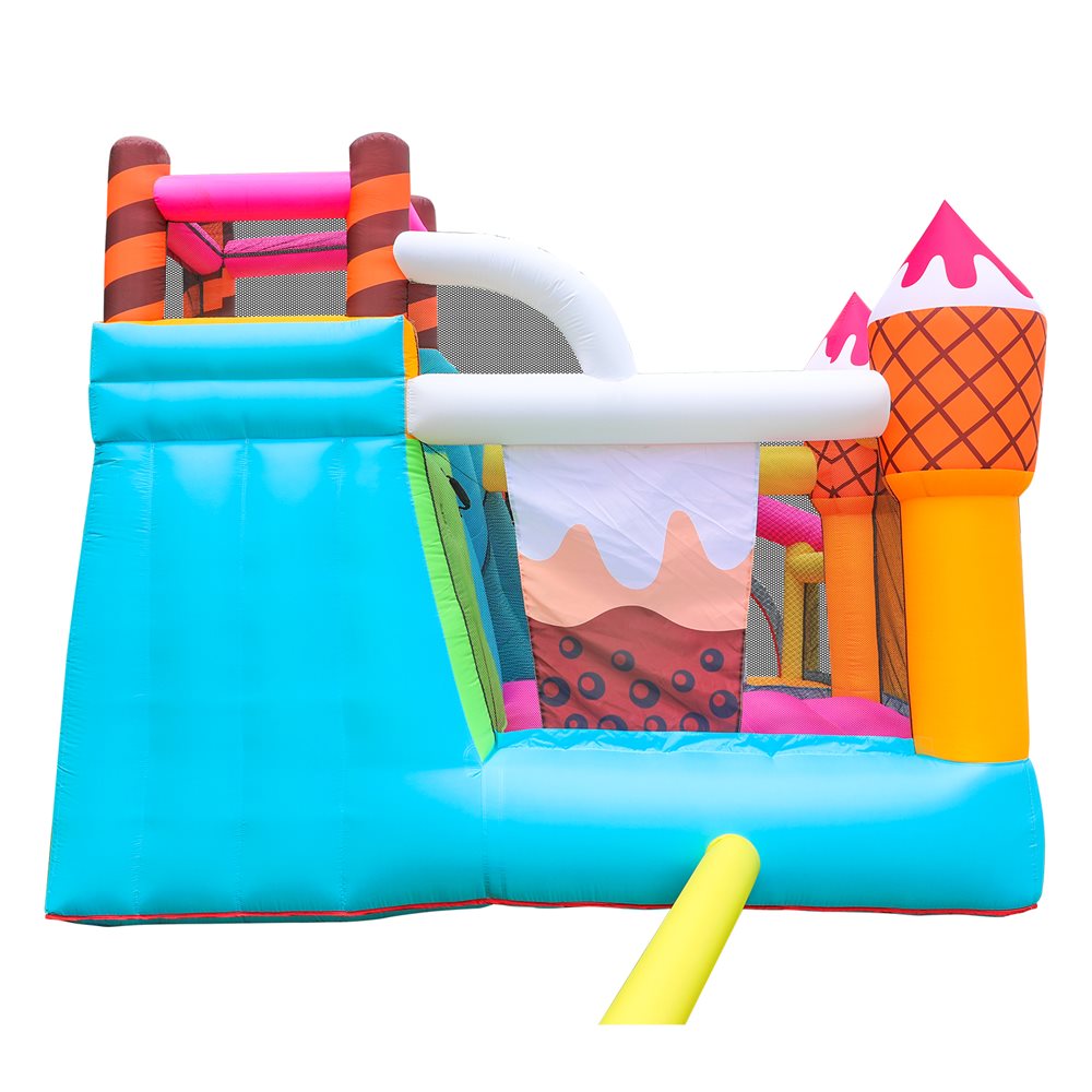 Med sit lækre is- og slikdesign, indbygget rutsjebane og masser af hoppeplads er den garanteret et hit til enhver fødselsdag, sommerfest eller legeaftale.