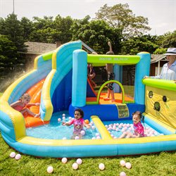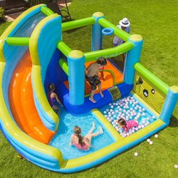 Er du klar til timevis af grin, leg og afkøling? Denne hoppeborg waterpark er det ultimative hit til haven – perfekt til børn, der elsker fart, vand og sjov!