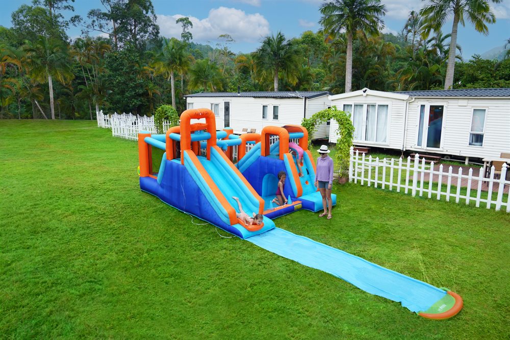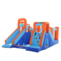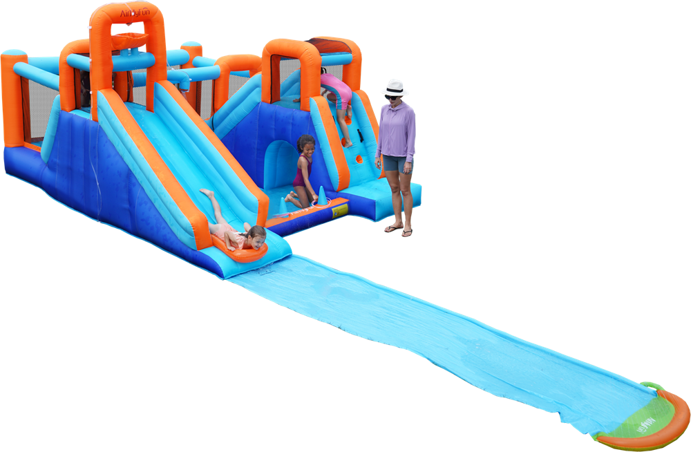 Er du klar til at gøre haven til børnenes ultimative vandland? Denne kæmpe hoppeborg kombinerer sjov vandrutsjebane, klatring, tunneler og sprøjtende action i ét fantastisk setup. Perfekt til varme sommerdage og timevis af grin, leg og fart!