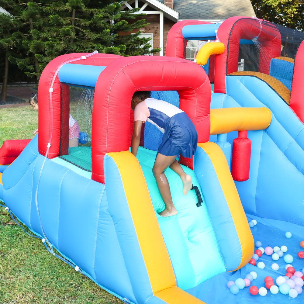 🎉 Mega sjov hoppeborg med rutsjebaner og forhindringer! 🏰💦