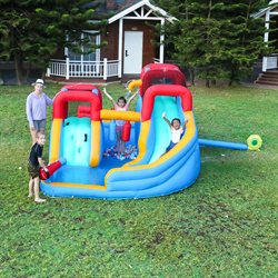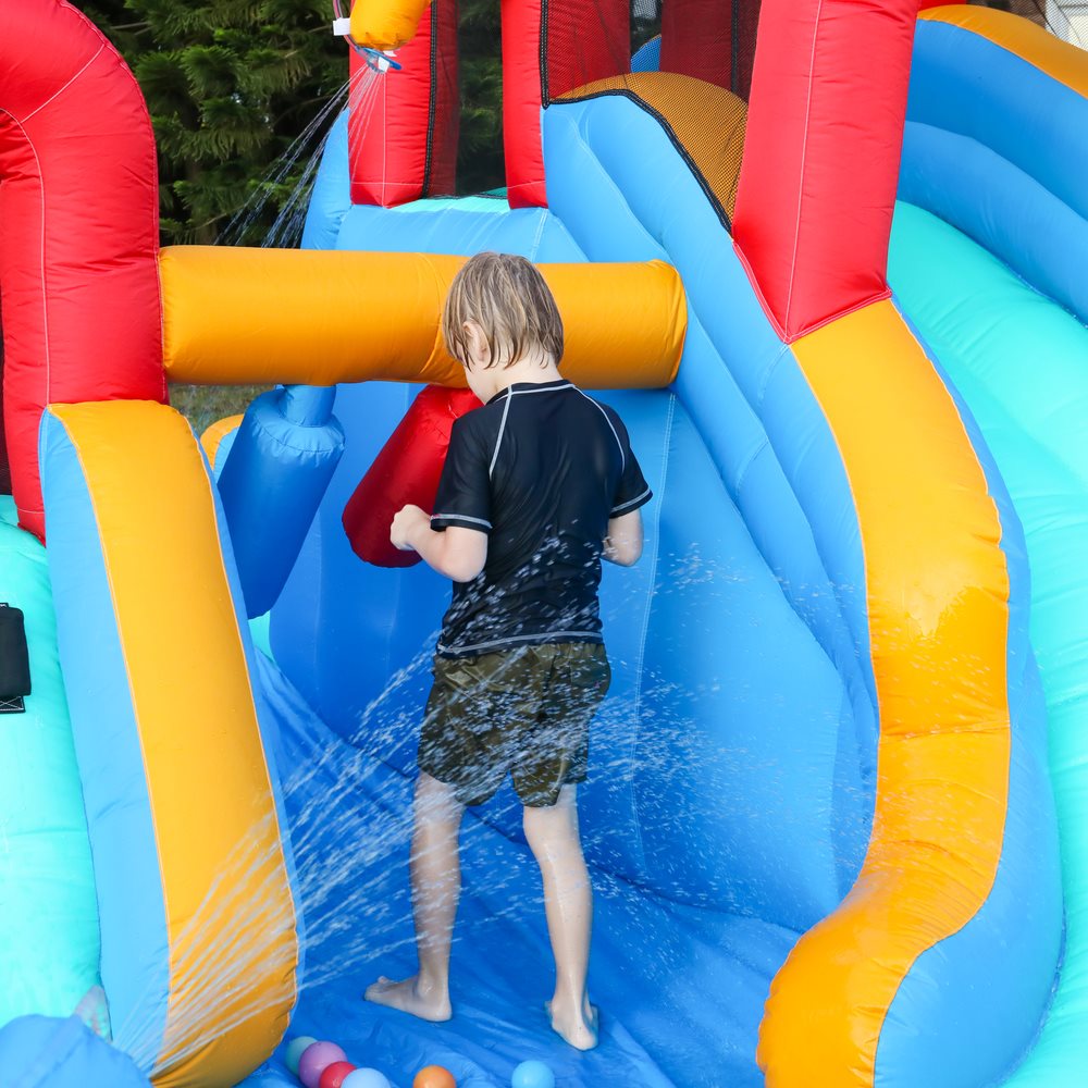 Gør haven til børnenes yndlingslegeplads med denne farverige og actionfyldte hoppeborg! Her er der timevis af