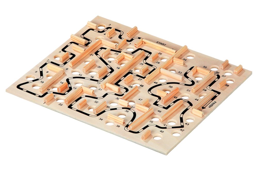 I dette fascinerende spil handler det om dygtighed, tålmodighed og kunnen. En lille jernkugle skal følge en forudbestemt sti, der er fyldt med en række huller. Kun den, der forstår at hæve eller sænke spillefladen med stor følsomhed på det rette tidspunkt, kan føre sin kugle sikkert gennem farezonerne.