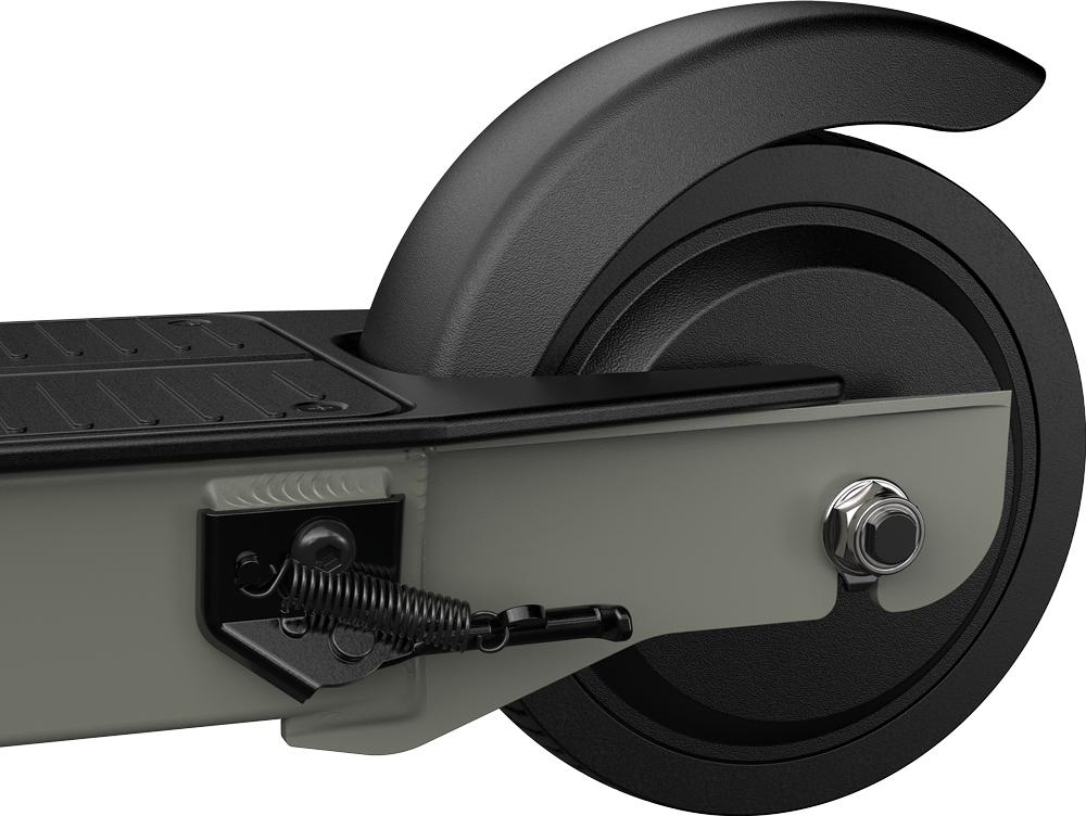 Det 254 mm pneumatiske forhjul hjælper med at udjævne ujævne overflader for en mere behagelig kørsel, og det 170 mm baghjul er luftfrit og punkteringsfrit.