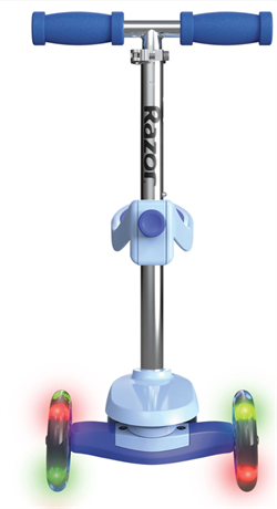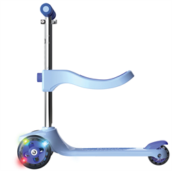 Den stabile trehjulede konstruktion gør den let at styre og svær at vælte, hvilket giver en tryg og sjov køreoplevelse. De farverige LED-lys i forhjulene og på dækket lyser op, når scooteren er i bevægelse, og slukker automatisk efter 30 sekunders stilstand for at spare på batteriet.
